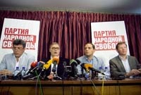Photo vignette: Conférence de presse organisée par les co-présidents du parti de la Liberté du peuple B.Nemtsov, M.Kassianov, V.Milov et V.Ryjkov, le 23 juin 2011, suite au refus opposé par le ministère de la Justice à la demande d’enregistrement de la formation. ©Radio Svoboda.